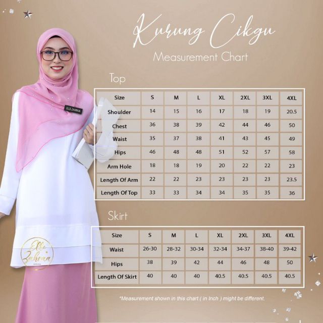 Kurung Cikgu Size Chart